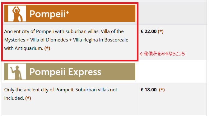 秘儀荘まで見る場合は「ポンペイ+」のチケットを購入するようにしてください。